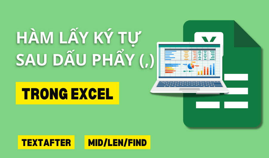 Để tách ký tự sau dấu phẩy (,) trong Excel, ta có sẽ sử dụng hàm TEXTAFTER với phiên bản Excel 365/2021 trở đi hoặc kết hợp hàm MID/LEN với FIND/SEARCH sử dụng cho mọi phiên bản Excel 2019 trở xuống. Dưới đây là công thức và cách tách chuỗi sau dấu phẩy chi theo từng trường hợp: