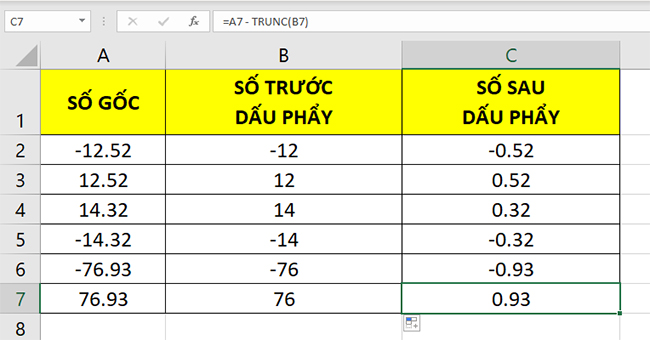 - Để lấy số sau dấu phẩy ta có sử dụng TRUNC.