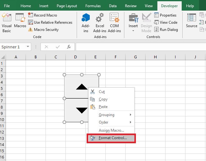 Bước 4: Tiếp theo, các bạn dùng chuột nhấn và kéo để tạo phím lên xuống. Sau khi tạo phím xong thì các bạn nhấn chuột phải vào phím rồi chọn Format Control.