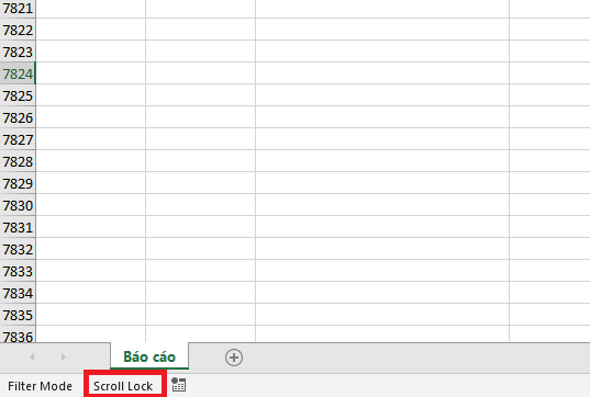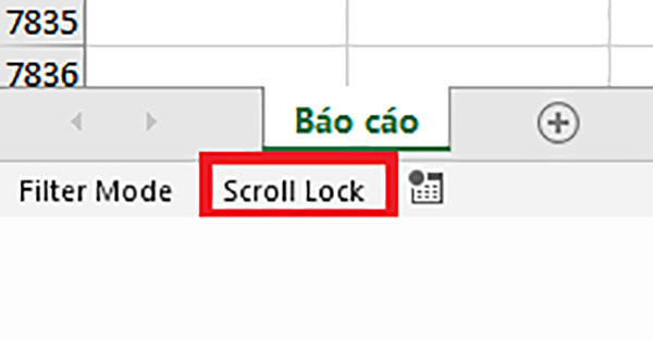 Hoặc khi tích chọn mục Scroll Lock mà dưới bên trái cửa sổ Excel hiện dòng chữ Scroll Lock thì cũng có nghĩa là ta đang bật.