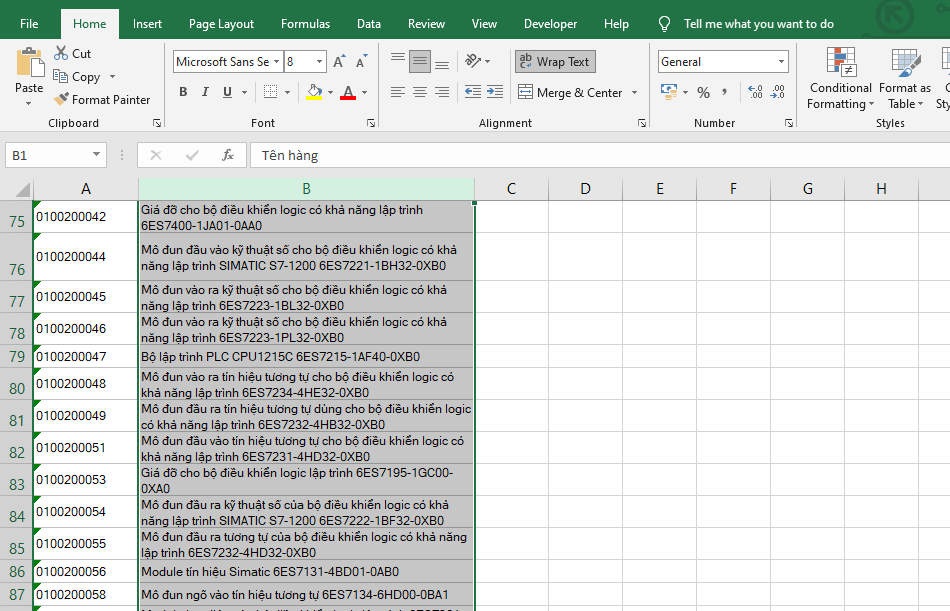 Để thiết lập tự động xuống dòng bằng Wrap Text, đầu tiên các bạn cần bôi đen toàn bộ vùng dữ liệu muốn tự động xuống dòng nếu dữ liệu vượt quá độ rộng của cột. Sau đó các bạn chọn thẻ Home trên thanh công cụ rồi nhấn chọn Wrap Text tại mục Alignment.