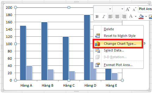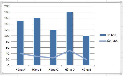 Ví dụ ta chọn loại biểu đồ cột và đường với đường nét liền thì sẽ thu được kết quả như sau: