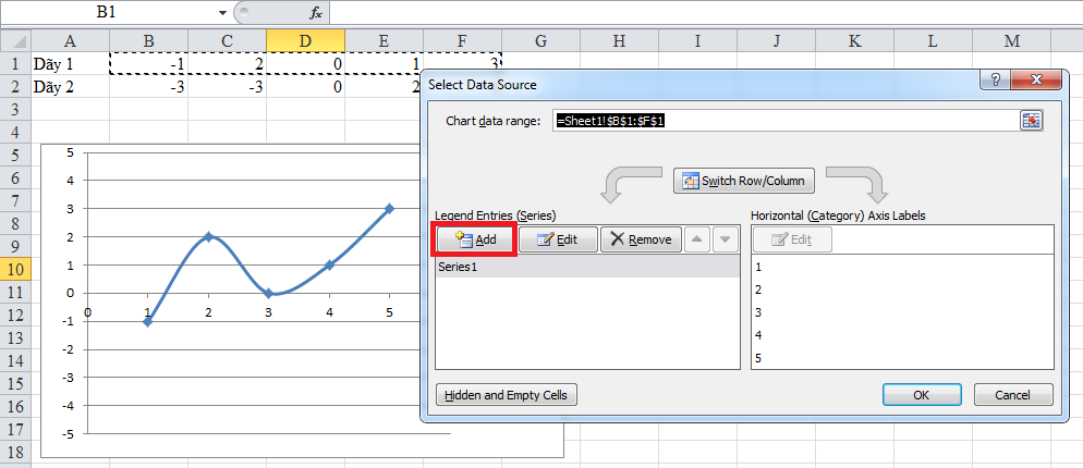 Sau đó tạo biểu đồ với giá trị để được biểu đồ hình sin như sau:
