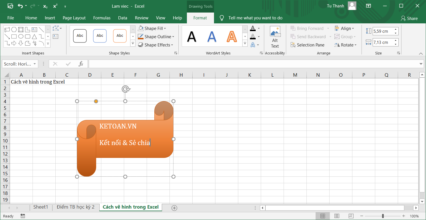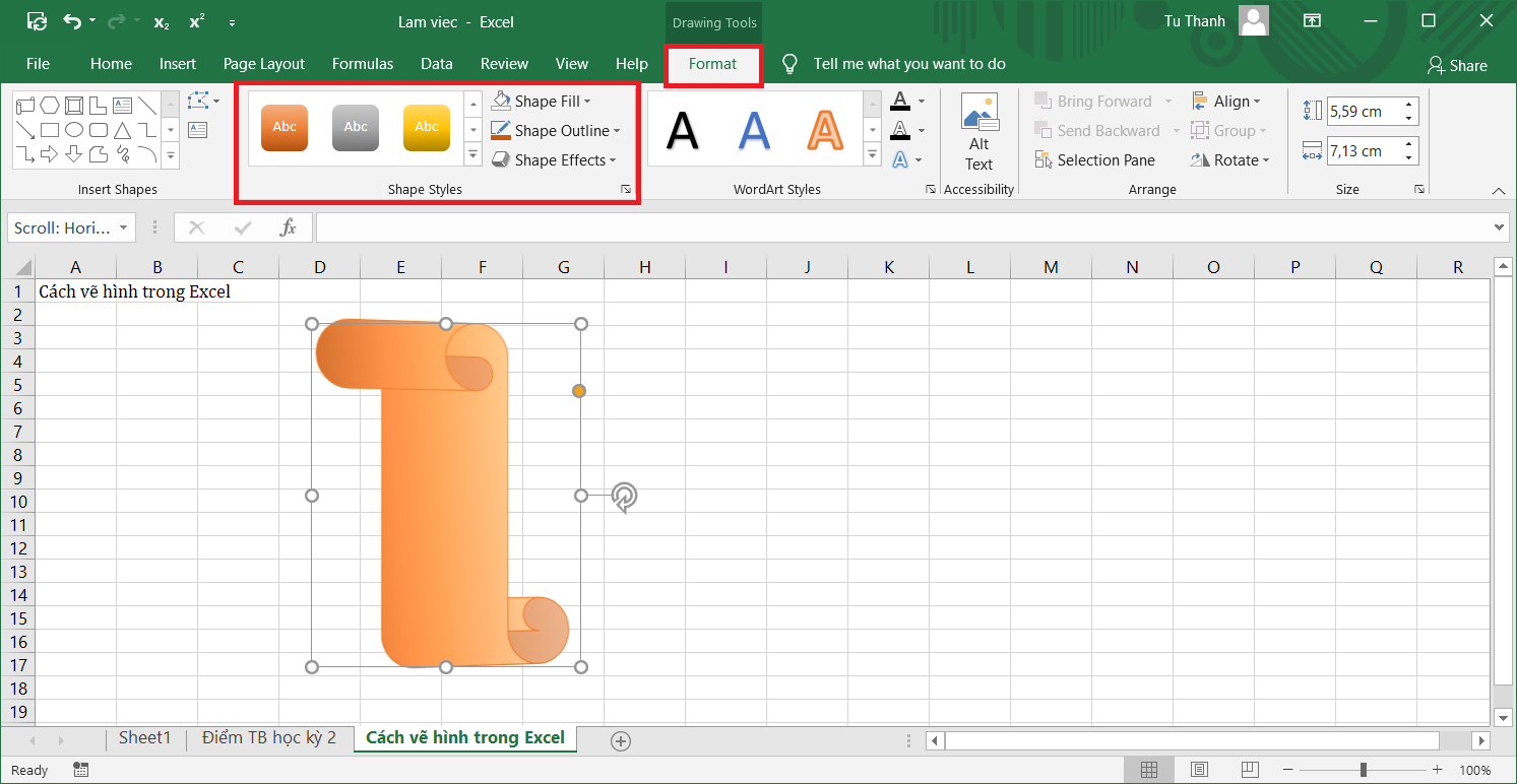 Vẽ hình trong excel không bị giới hạn bởi những khối hình mặc định. Bạn có thể sáng tạo thêm theo cách riêng để bảng tính thêm phần trực quan và sinh động hơn. Cách thực hiện như sau: