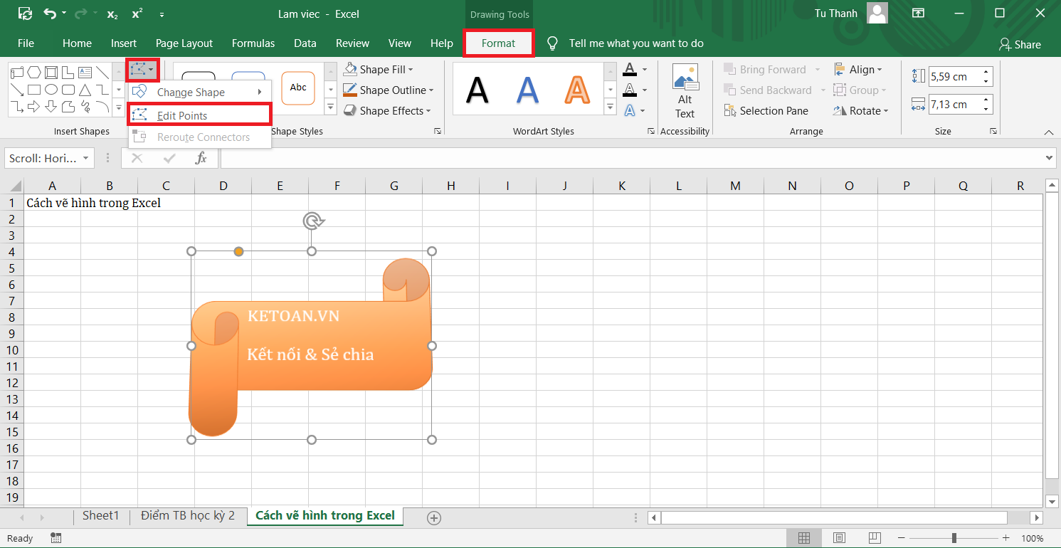 Bước 1: Chọn hình vẽ, vào thẻ Format → Edit → Edit Points.