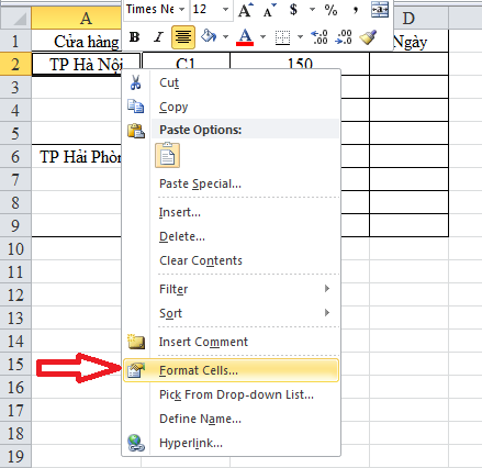 Bước 1: Chọn vùng dữ liệu cần xoay rồi nhấn chọn Format Cells
