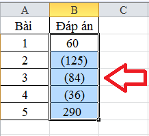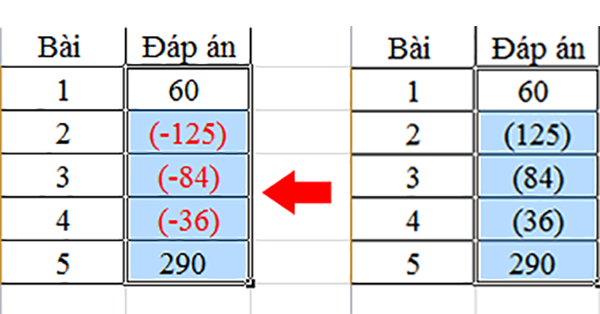 Ngay sau đó, trên màn hình sẽ xuất hiện số âm đã được bôi đỏ. Với cách này, số âm trong bảng số liệu đã được chuyển sang định dạng đóng ngoặc mà vẫn giữ nguyên dấu “-“.
