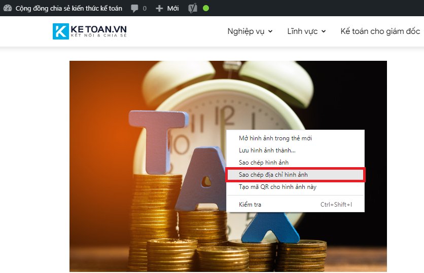 - B1: Sao chép đường link ảnh trên web (nhấp chuột phải vào hình ảnh > chọn Copy image address).