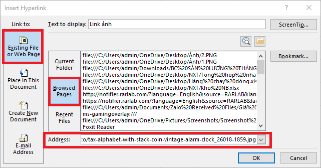 - Ở mục Address, ta dán link ảnh đã sao chép ở bước 1.