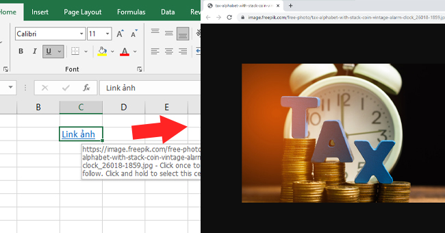 Cách này ta sẽ tạo một siêu liên kết (hyperlink) có thể nhấp vào trong 1 ô hoặc hình ảnh và trình duyệt sẽ mở đường dẫn URL của hình ảnh và hiển thị hình ảnh. Cách này khá đơn giản và phù hợp khi bạn muốn gắn hình ảnh xem chi tiết thêm ngoài: