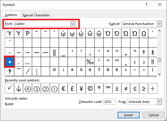 - Kéo xuống và chọn biểu tượng bullet (•) hoặc ký hiệu khác mà bạn thích.