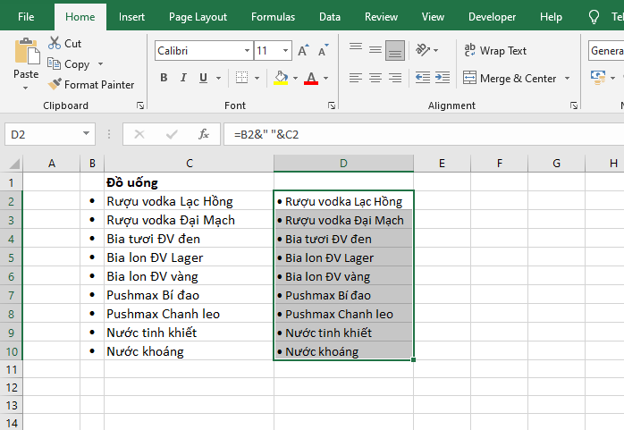 - Khi cần chèn nhiều bullet trong cùng 1 ô, hãy nhấn Alt + Enter để xuống dòng trong ô.