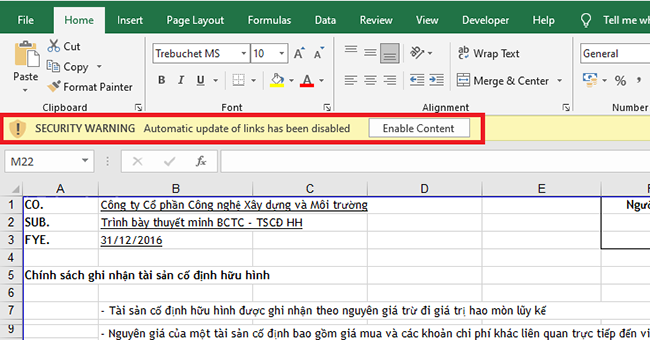 - Bước 1: Chọn Enable Content > Chọn Edit Links hoặc vào Data > Edit Links