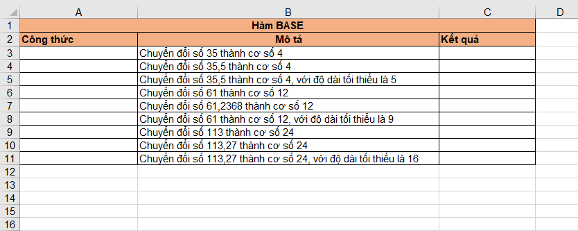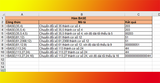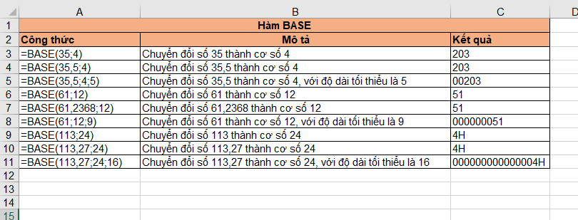 Như vậy, bài viết trên đã hướng dẫn các bạn sử dụng hàm BASE trong Excel. Chúc các bạn thành công!