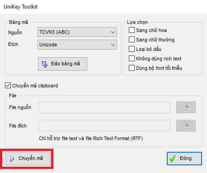 Bước 3: Hộp thoại Unikey Toolkit hiện ra. Các bạn chọn mục Chuyển mã.