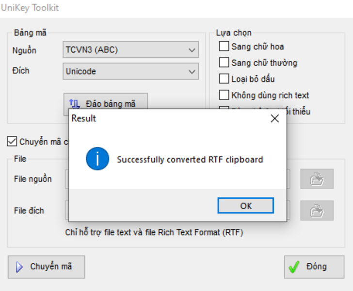 Bước 4: Lúc này, thông báo Successfully converted RTF clipboard hiện ra. Có nghĩa là chúng ta đã chuyển mã thành công. Chọn OK để hoàn tất.
