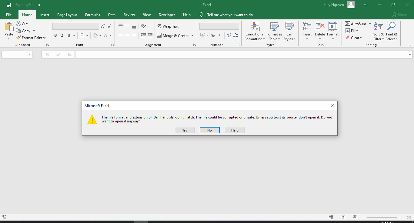 Khi các bạn mở những file Excel tách riêng từng sheet đó ra thì sẽ có thông báo như hình dưới hiện lên. Các bạn chỉ cần nhấn Yes là có thể chỉnh sửa dữ liệu một cách bình thường.