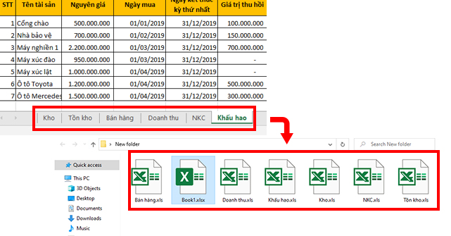 Nhiều trường hợp, ta sẽ cần tách các sheet thành từng file riêng biệt. Ví dụ như kế toán cần tách các file báo cáo ra riêng khỏi file báo cáo tổng. Để thực hiện, ta sẽ có 2 cách: sử dụng thủ công (phù hợp với số lượng Sheet ít), sử dụng mã VBA (phù hợp với số lượng sheet lớn). Trong bài viết này, Kế Toán VN sẽ hướng dẫn chi tiết cả hai cách: