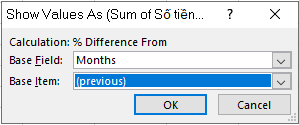 - Đặt Base field = Month, Base item = Previous (so tháng hiện tại với tháng trước).