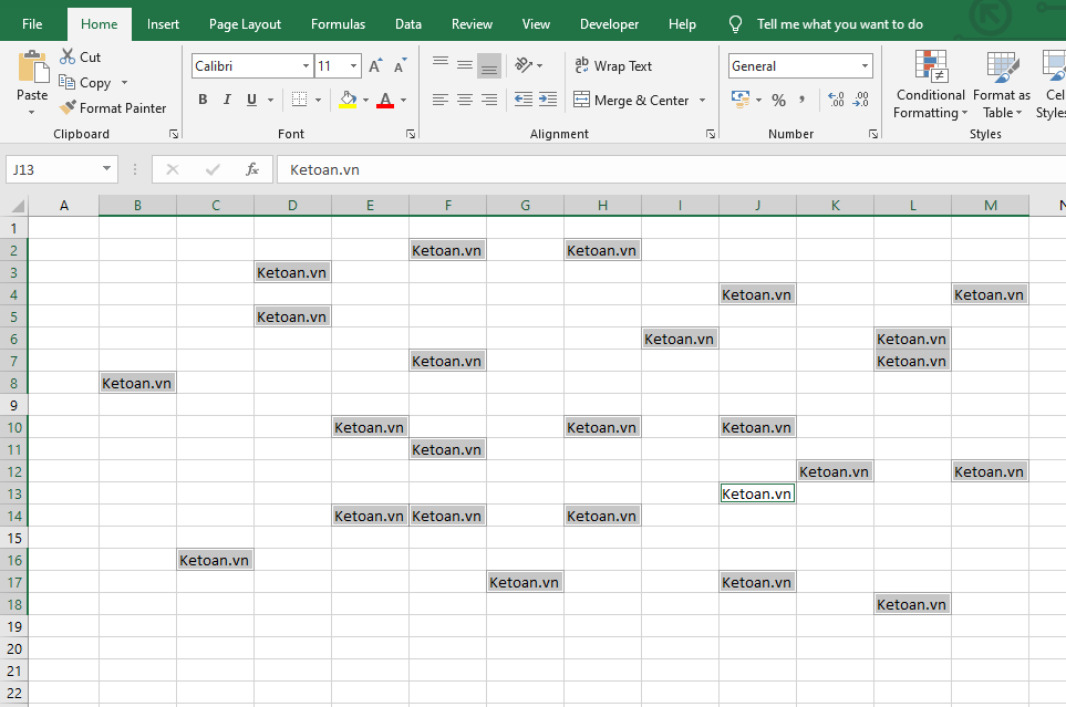 Sau khi nhập dữ liệu xong, các bạn nhấn Ctrl + Enter. Chỉ cần như vậy là dữ liệu sẽ được nhập vào tất cả các ô đã được bôi đen một cách nhanh chóng.