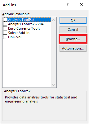 Bước 4: Lúc này, cửa sổ Add-ins hiện ra. Các bạn chọn mục Browse để thêm add-in.