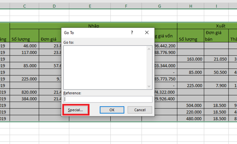 Bước 2: Lúc này, cửa sổ Go To hiện ra. Các bạn nhấn vào mục Special.