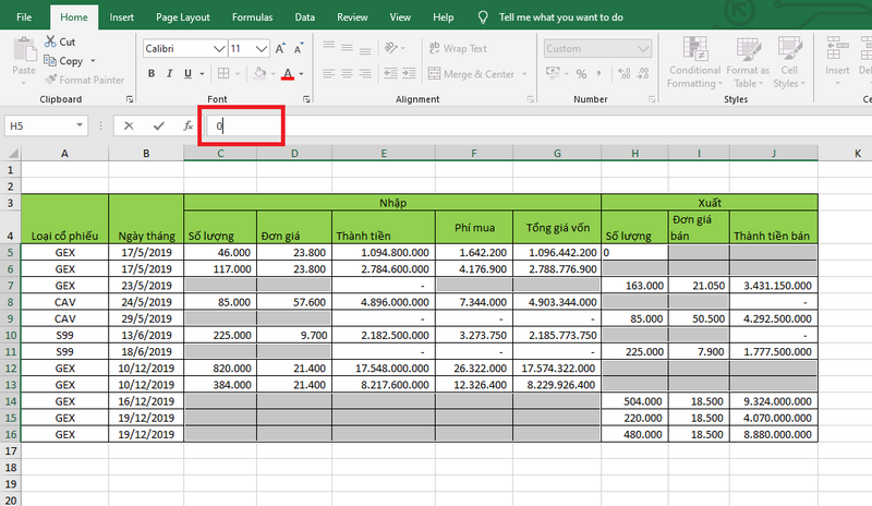 - Bước 5: Nhấn F2, gõ số 0 vào ô trống > nhấn ctrl + enter