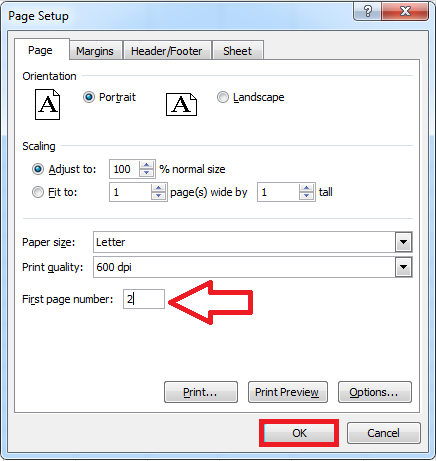 Số trang này không cần bắt đầu từ 1, ví dụ chúng tôi sẽ đánh số trang là 2 vào mục First page number. Sau khi điền xong bạn hãy nhấn OK để hoàn tất.