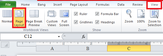 Tiếp theo các bạn mở mục View trên thanh công cụ rồi chuyển chế độ xem Excel từ Normal sang Page Layout. Với chế độ xem này các bạn có thể xem dữ liệu trong Excel dưới dạng từng trang giấy khi in. Thao tác chia thành các trang sẽ giúp bạn đánh số trang và in dữ liệu dễ dàng hơn.