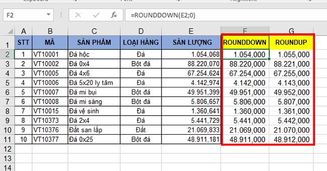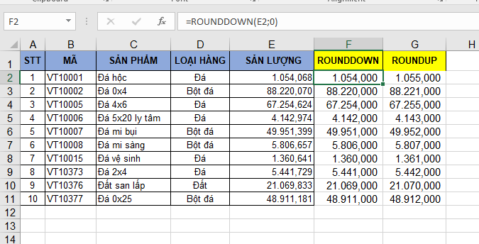 2. Sử dụng hàm ROUNDUP và ROUNDDOWN để làm tròn số lên/xuống