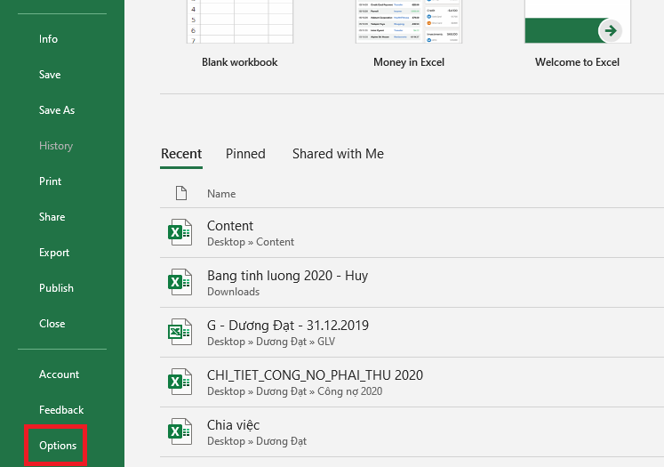 Bước 2: Ở góc dưới bên trái, chọn Options.