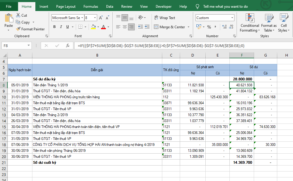 - Ứng dụng linh hoạt: Công thức có thể áp dụng cho nhiều loại tài khoản khác nhau (131, 331, 511, 621…).