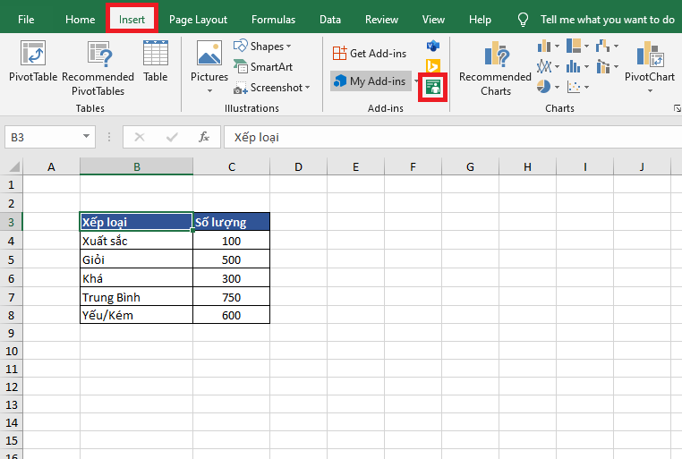 - Title: tên biểu đồ (ví dụ: “Thống kê xếp loại học sinh”)