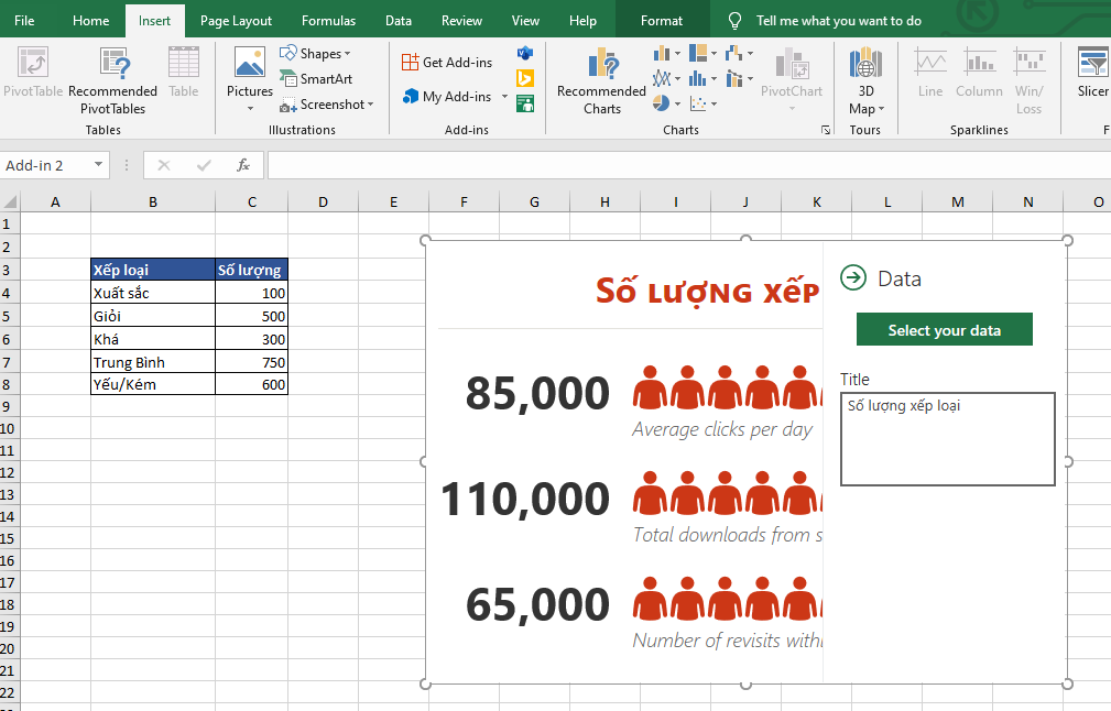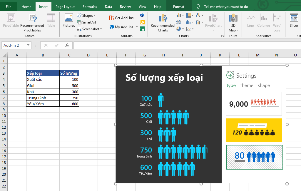 People Graph là tiện ích bổ sung (add-in) trong excel để tạo ra các infographic để thể hiện trực quan và sinh động các dữ liệu liên quan đến số lượng người (ví dụ như kết quả khảo sát, thống kê dân số, đánh giá kết quả học tập, xếp loại, tỷ lệ thất nghiệp,…).