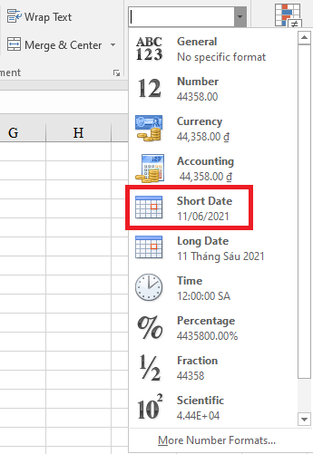 Ngay lập tức, Excel sẽ chuyển ngày tháng về định dạng ngày ngắn như dưới đây.