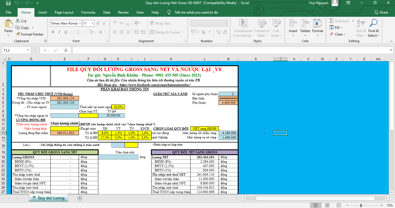 Tải ngay File Excel chuyển đổi lương Gross sang Net