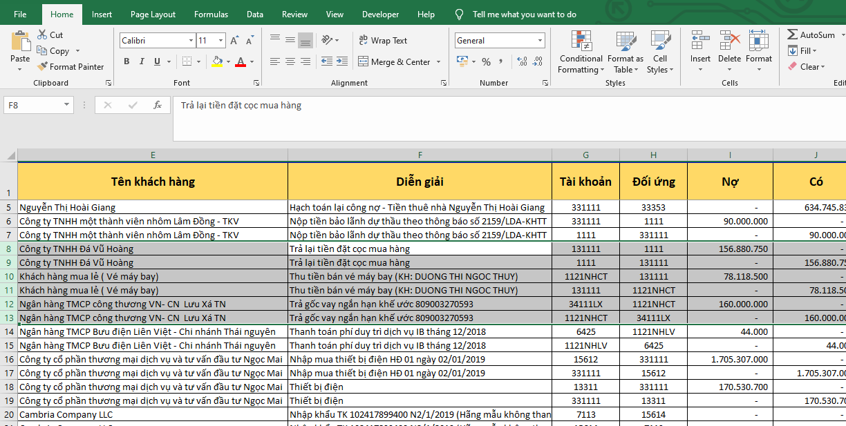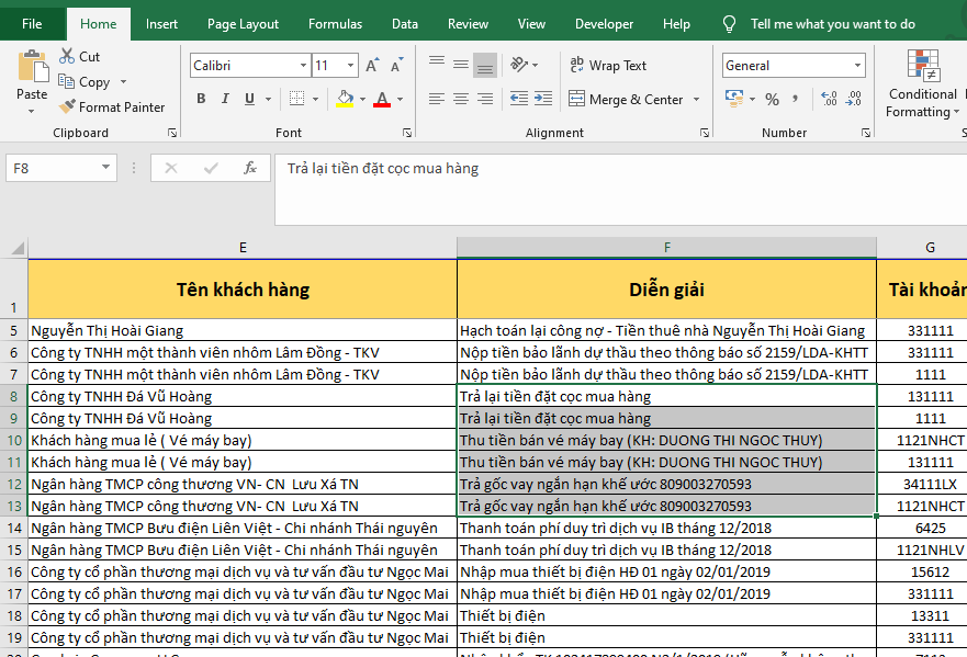 Để thêm nhiều dòng cùng lúc, ta chỉ cần bôi đen số lượng dòng bên dưới dòng cần chèn lên trên (ví dụ như muốn chèn 5 dòng lên trên dòng 8 thì ta bôi đen từ dòng 8 đến dòng 13)