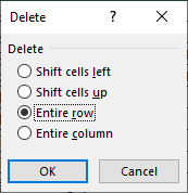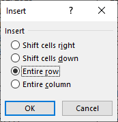 Cả 3 cách thêm dòng trên đều có thao tác mở hộp thoại Insert và chọn Entire Row.