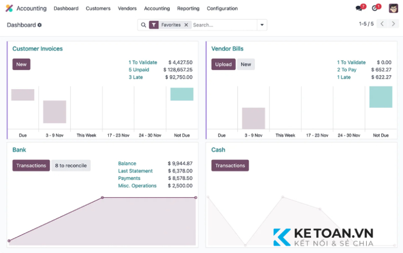 Một số tính năng nổi bật của Odoo Accounting gồm: