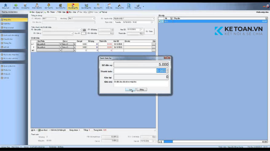 - Có thể theo dõi số lượng hàng hóa trong kho, định khoản kế toán tự động.