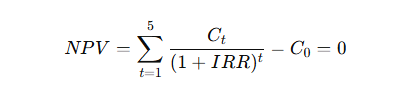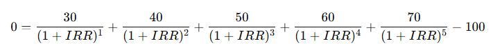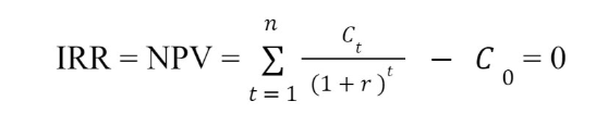 Theo công thức trên thì IRR là nghiệm của phương trình NPV = 0.